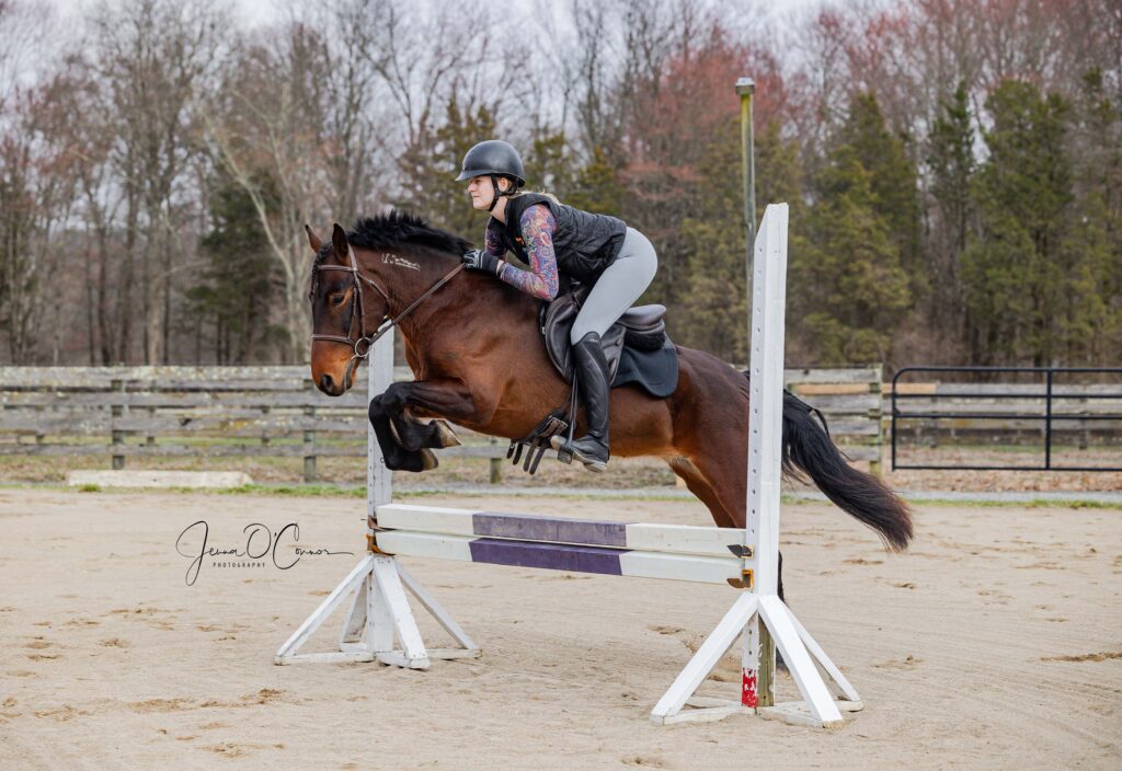 Forward type with excellent brakes, overall she is very easy just point and shoot! Halina has miles competing in the .80 jumpers with a kid. Currently schooling 3’3 - 3’6 she could make an excellent FEI prospect for a competitive junior looking to have fun, a petite amateur, or even a kid wanting a safe ride to grow with. She is very kind and forgiving. I could see her excelling in Jumpers, Eventing, Fox Hunting, or even the Hunter/Equitation circuit with her naturally rhythmic gaits.