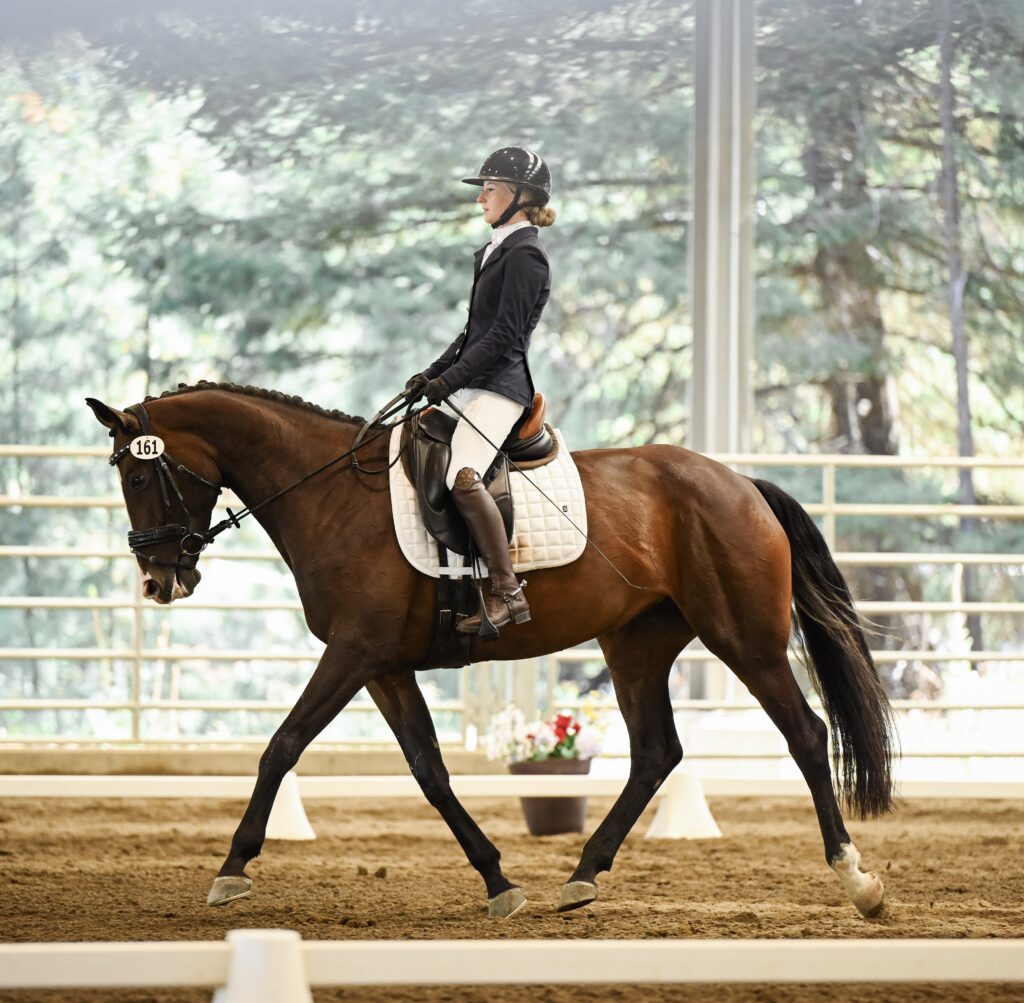 Graceland’s Lucia is a stunning 2017 16.1h premium registered Oldenburg mare. Lucia is currently competing at Novice with her trainer and at Beginner Novice with an adult amateur. In 2024, she placed 3rd at the Area VII Open Novice Championships, finishing on her dressage score of 28.3. She recently competed in the Open Novice at Twin Rivers and finished on her dressage score, as well. Lucia is qualified for the AECs at BN with her adult amateur rider (they finished 3rd and 4th at their most recent BN events).