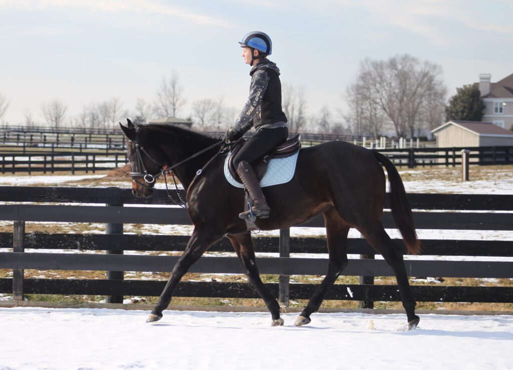 Uno is the complete package with her good looks, kind temperament, and blossoming talent. She is loving her new job as a sport horse and is ready to find her perfect person! She is going well under saddle. Uno is trotting poles and little x-rails and is absolutely loving it! Uno also has the best brain, as she is happy to hack out alone and even enjoyed a fun snow day in the outdoor. No maintenance. No vices. And completely barefoot. She could easily go in any direction, from dressage to eventing (or anything in-between) with her new person. She is even showing the movement for hunters. Perfect manners in the barn with a pet personality. Teen/ammy friendly in every way. Uno is an incredibly nice up and coming star. Anyone would be lucky to have this unicorn!